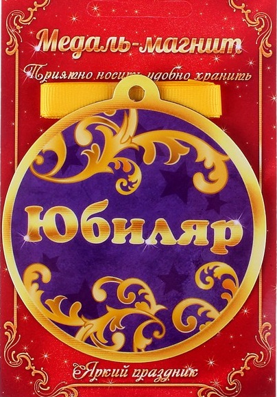 Главная / Каталог / Юбилей / 650302 Медаль магнит "Юбиляр" на ленте.Диаметр 8,5 см.