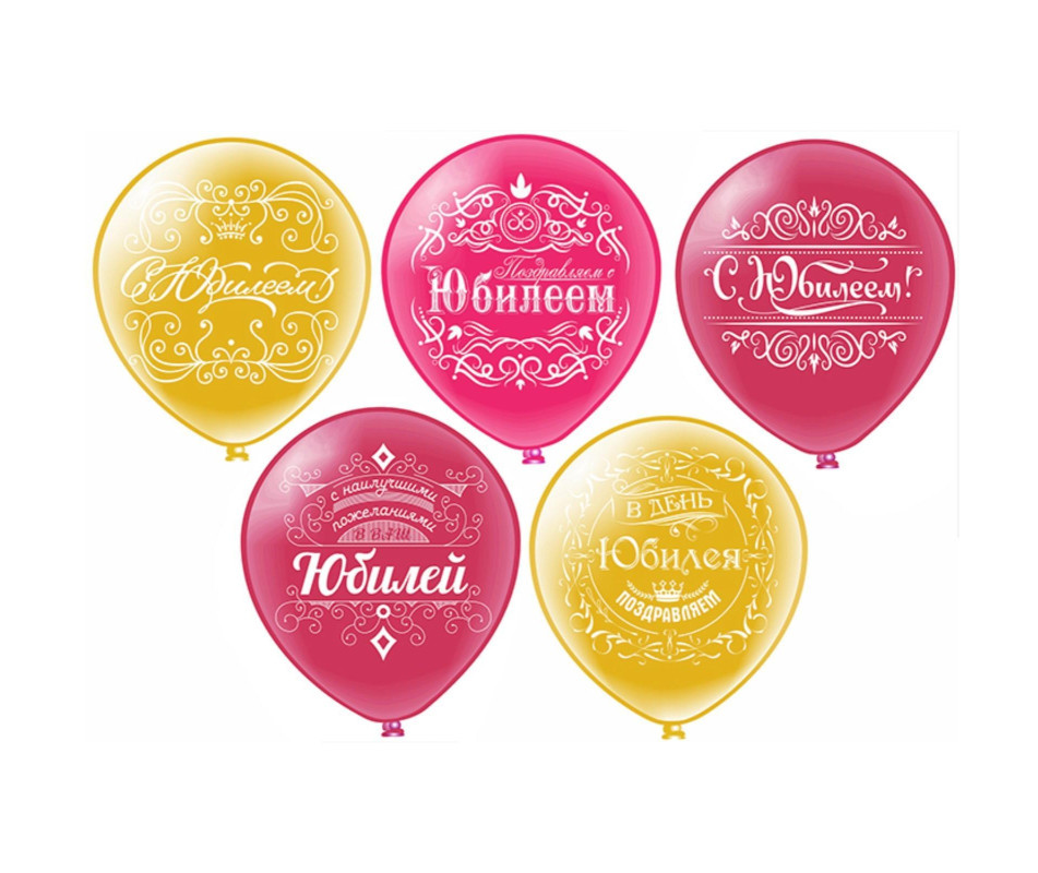7107269 (БК 35265) Шарик 2-сторонний "С Юбилеем!" D 30 см. Цвета ассорти (с гелием)