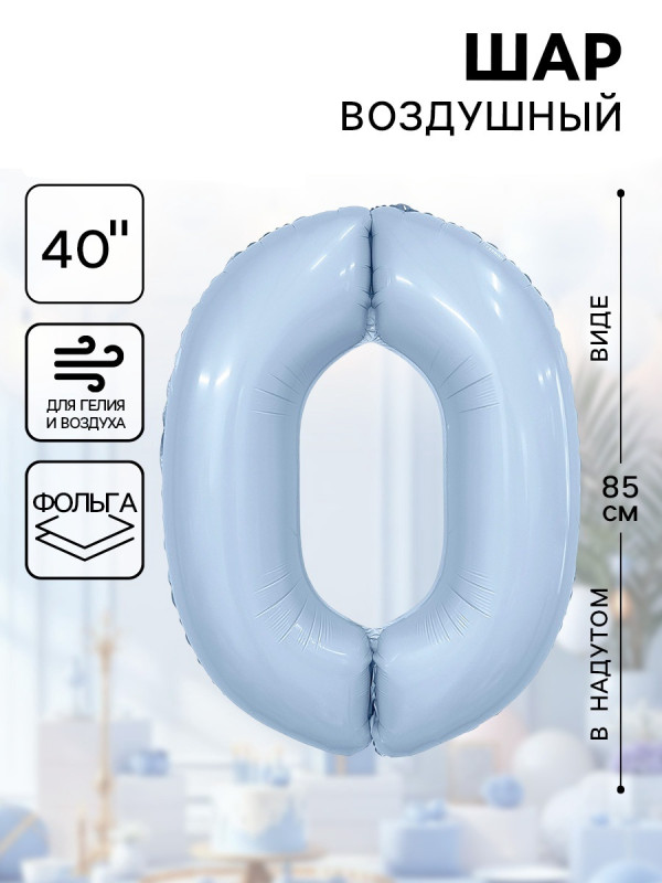 10899036 (АГ 941094) Небесно голубая Slim фольгированная "Цифра 0" Высота 102 см.