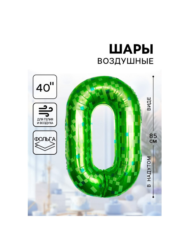 10919679 (ДБ 26900) Зеленая в клетку фольгированная "Цифра 0" Высота 85 см.