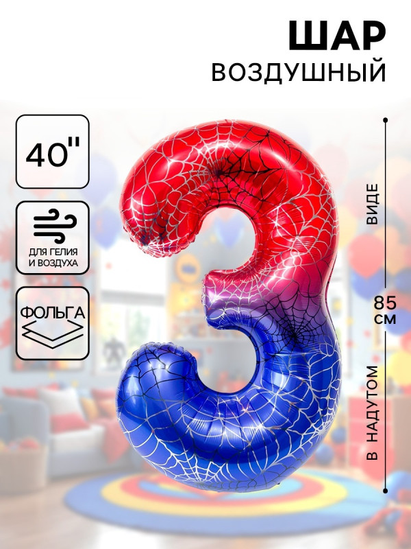 10919685 (ДБ 26973) Фольгированная "Цифра 3.Паутина" Высота 102 см.