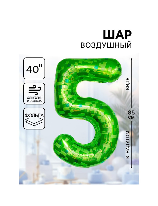 10919691 (ДБ 26905) Зеленая в клетку фольгированная "Цифра 5" Высота 85 см.
