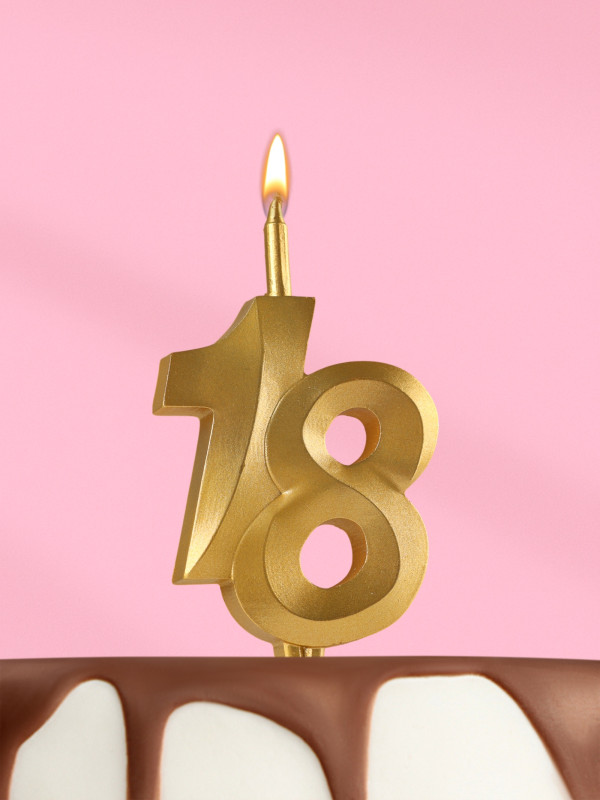 10873633 (3754) Двойная свеча в торт "Цифра 18 лет" Цвет ярко золотистый