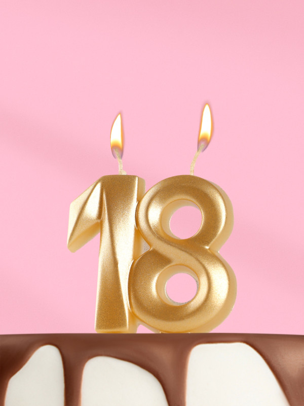 7664825 Двойная свеча в торт "Цифра 18 лет" Цвет золотистый