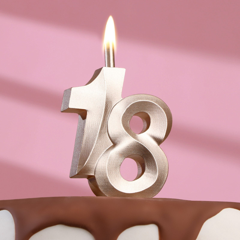 9608539 (1611) Двойная свеча в торт "Цифра 18 лет" Цвет золотистый Высота 10 см.