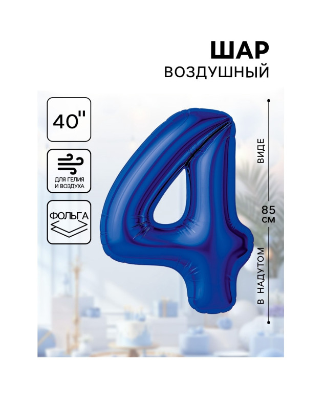 10930082 (АГ 941254) Темно синяя Slim фольгированная "Цифра 4" Высота 85 см.