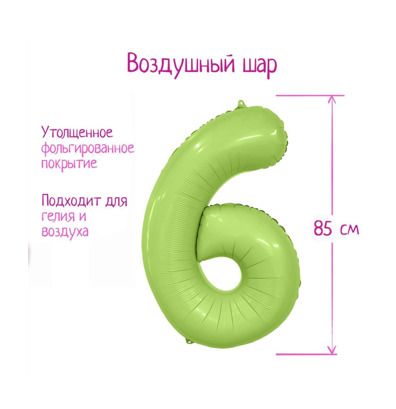 9517499 (АГ 222094) Фисташковая фольгированная "Цифра 6" Высота 100 см.