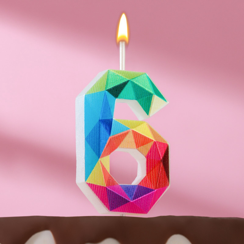 9527324 Свеча в торт "Цифра 6.Разноцветные грани" на шпажке. Высота 5,3 см.