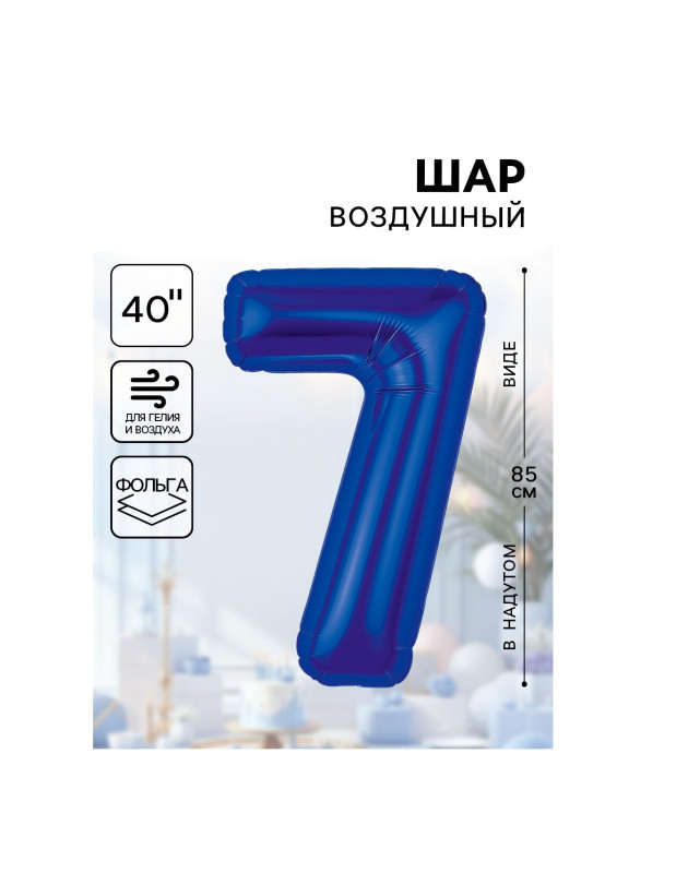 10930087 (АГ 941285) Темно синяя Slim фольгированная "Цифра 7" Высота 85 см.