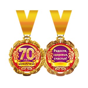 58.53.145 Медаль мужская "С Юбилеем 70 лет!" на ленте.Диаметр 6,5 см.Металл