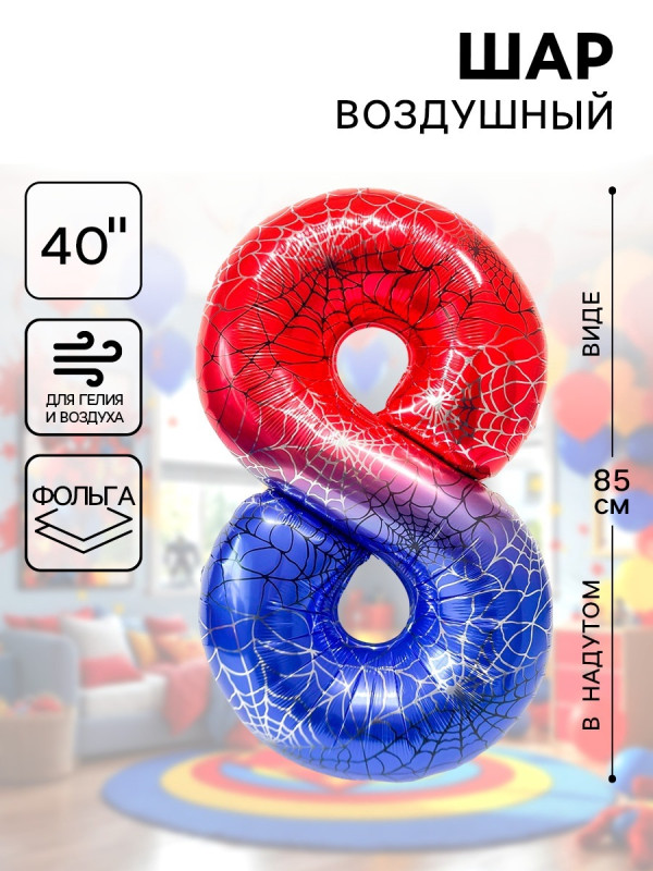 10919696 (ДБ 26978) Фольгированная "Цифра 8.Паутина" Высота 102 см.