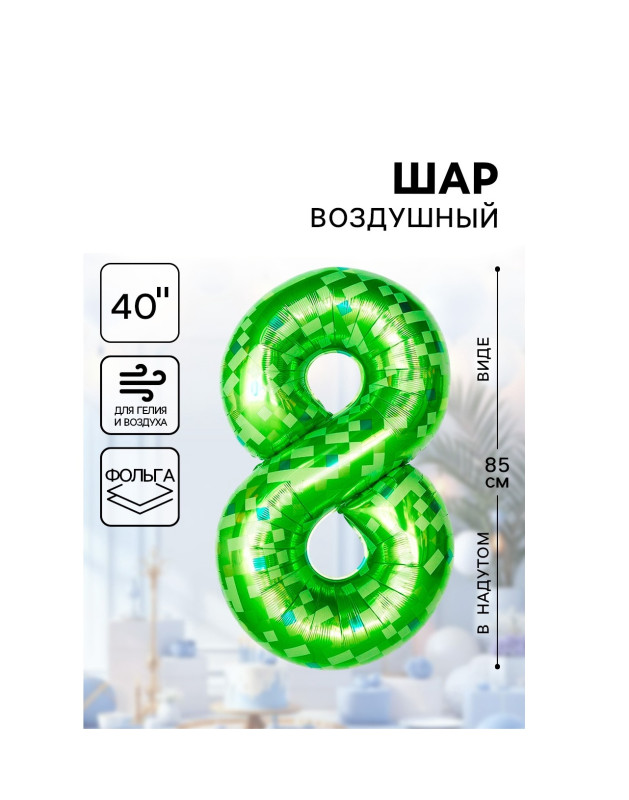 10919697 (ДБ 26908) Зеленая в клетку фольгированная "Цифра 8" Высота 85 см.