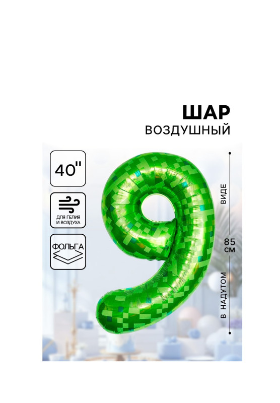 10919699 (ДБ 26909) Зеленая в клетку фольгированная "Цифра 9" Высота 85 см.