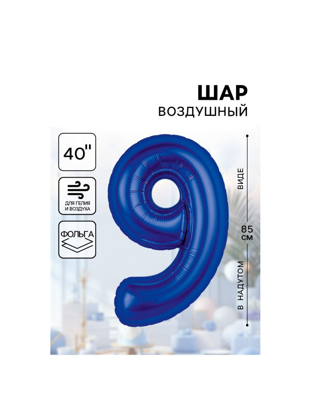 10930092 (АГ 941308) Темно синяя Slim фольгированная "Цифра 9" Высота 85 см.