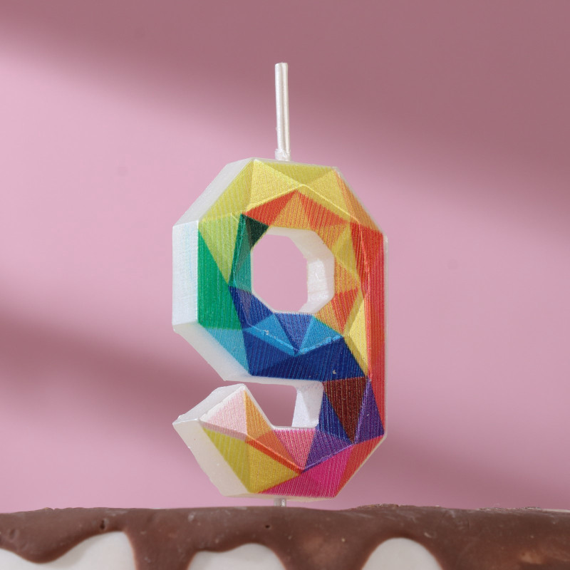9527333 Свеча в торт "Цифра 9.Разноцветные грани" на шпажке. Высота 5,3 см.