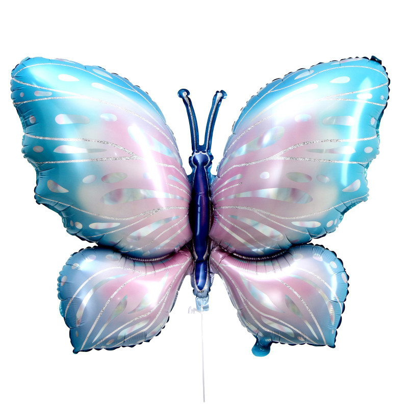 9250733 Фольгированная фигура "Радужная голубая бабочка" Высота 95 см.