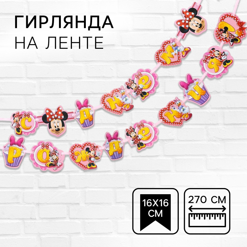 1145943 Гирлянда на ленте "С Днем рождения! Минни Маус " Длина 270 см.