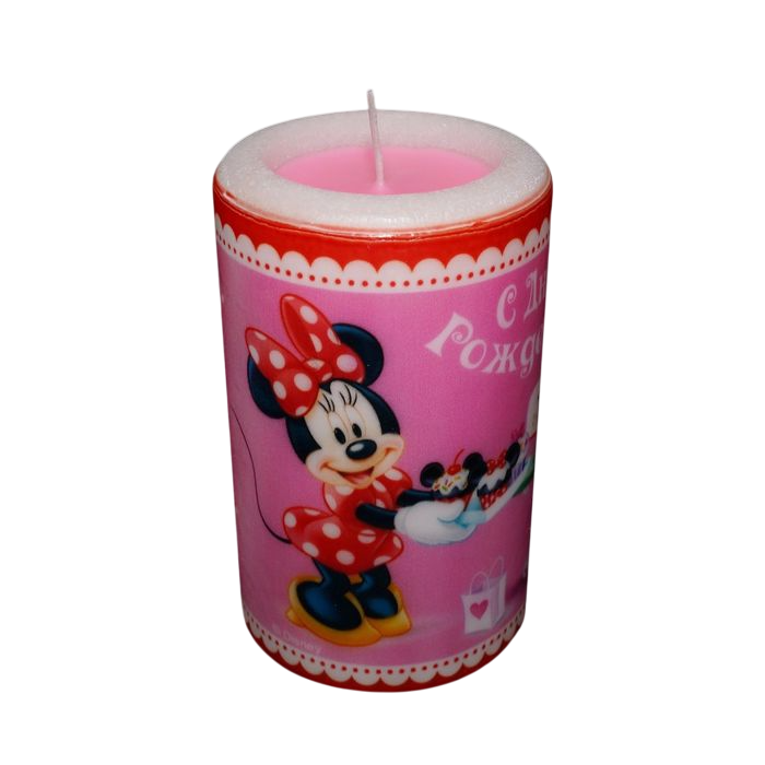 1767706 (1269) Свеча- сюрприз "Минни Маус с пироженным" Высота 10 см. Ширина 6 см.