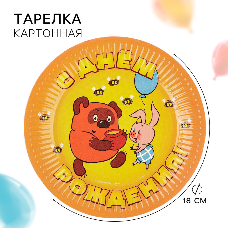 10050542 Набор тарелок "С Днем рождения! Винни Пух и Пятачок" Диаметр 18 см. (10 шт.)