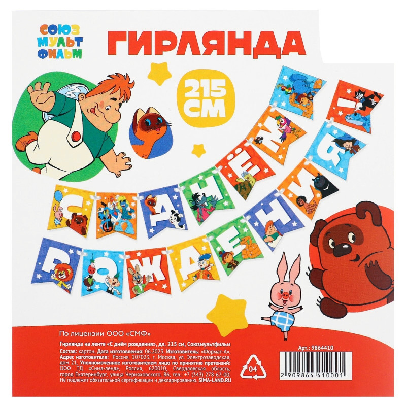 9864410 Гирлянда на ленте "С Днем рождения! Союзмультфильм " Длина 176 см.