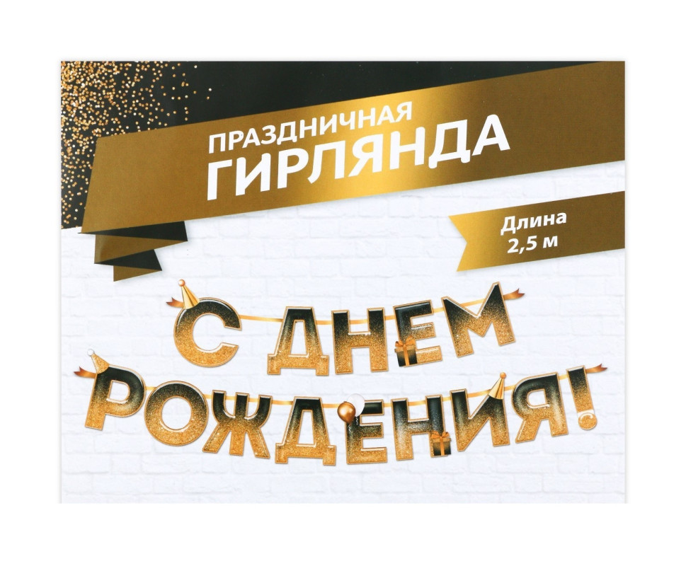 9373414 Гирлянда на ленте "С Днем рождения!" Длина 250 см. Цвет черный с золотым