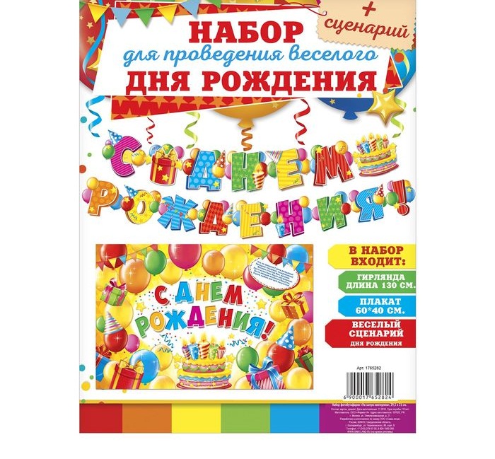 1945112 Набор "С Днем рождения!": Гирлянда 198 см. + плакат 60 х 40 см. + сценарий
