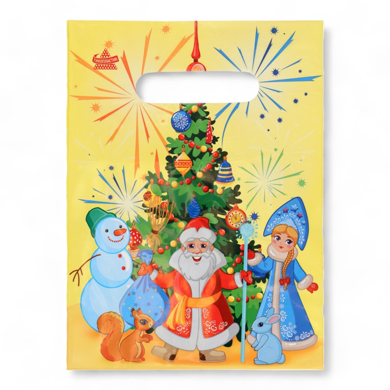 Главная / Каталог / Новый год / 10636551 Пакет "С Новым годом! Хоровод: Дед Мороз, Снегурочка и снеговик" Размер 20 х 30 см.
