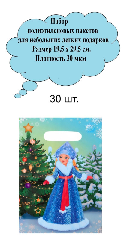 Главная / Каталог / Новый год / WW 10636548/1 Набор новогодних пакетов (30 шт.) Размер 19 х 25 см. Плотность 30 мкм