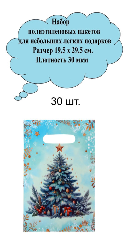 Главная / Каталог / Новый год / WW 10636549/1 Набор новогодних пакетов (30 шт.) Размер 19 х 25 см. Плотность 30 мкм