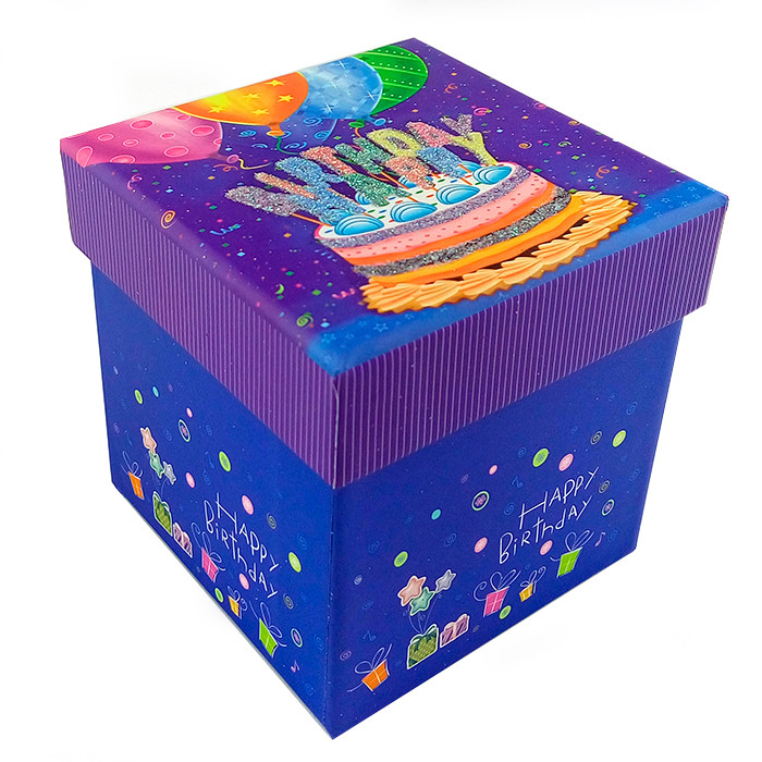 БР 2307-1 Коробка "Happy Birthday! Торт с шариками" Размер 9,5 *9,5 *10 см.