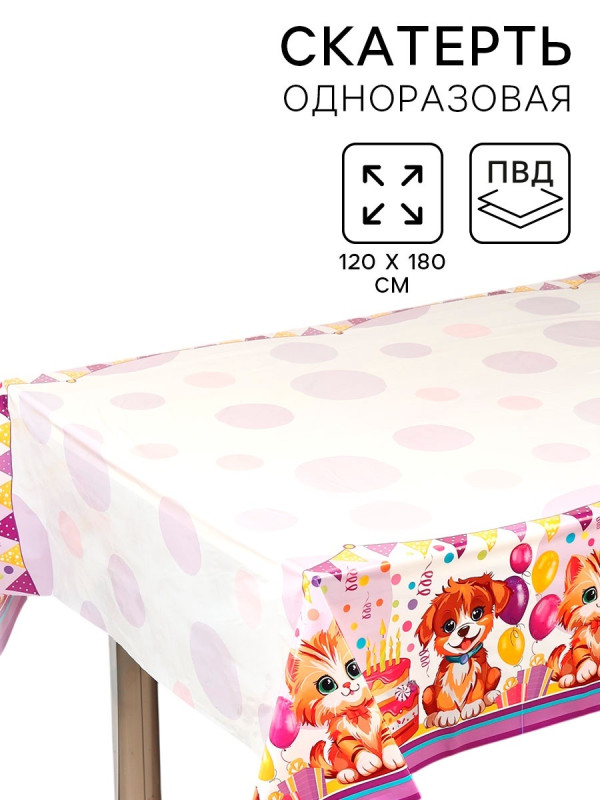 10899465 Скатерть "Пушистики: Щенок и котенок" Размер 120 х 180 см.
