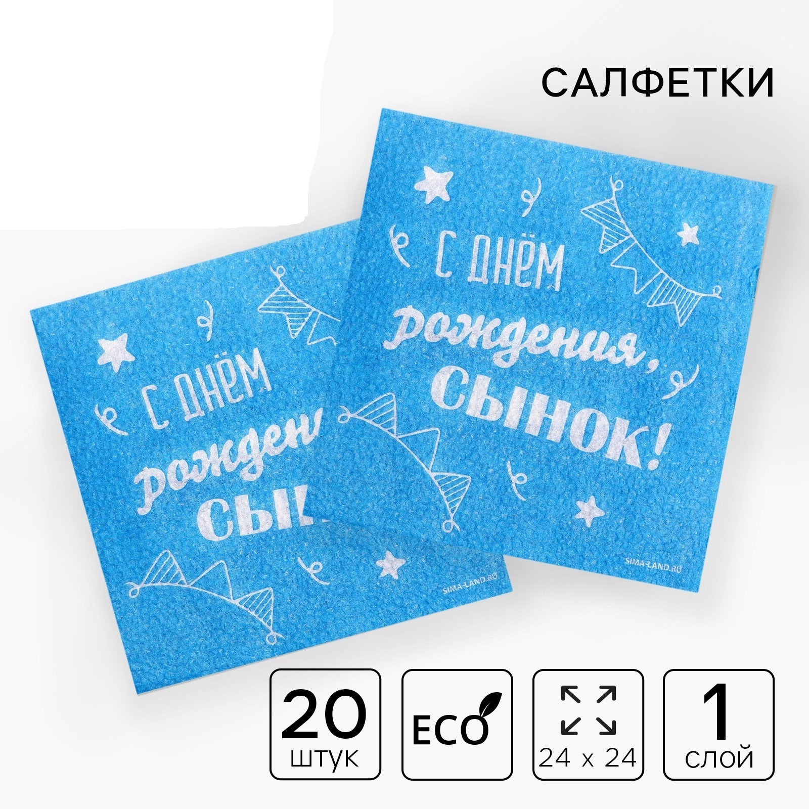 7756557 Набор ярко голубых салфеток "С Днем рождения, сынок!" Размер 25 х 25 см. (20 шт.)
