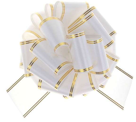 141350 Белый большй бант с золотой полосой для упаковки. Ширина 10 см.