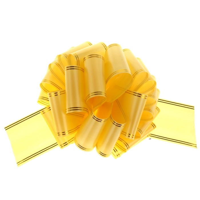 141351 Желтый большой бант с золотой полосой для упаковки. Ширина 10 см.