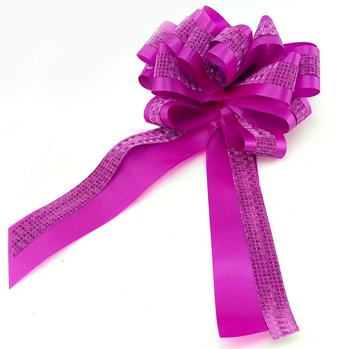 БР 1705053 Малиновый бант- шар с серебряной полосой для упаковки. Ширина 4,5 см. Диаметр 16 см.
