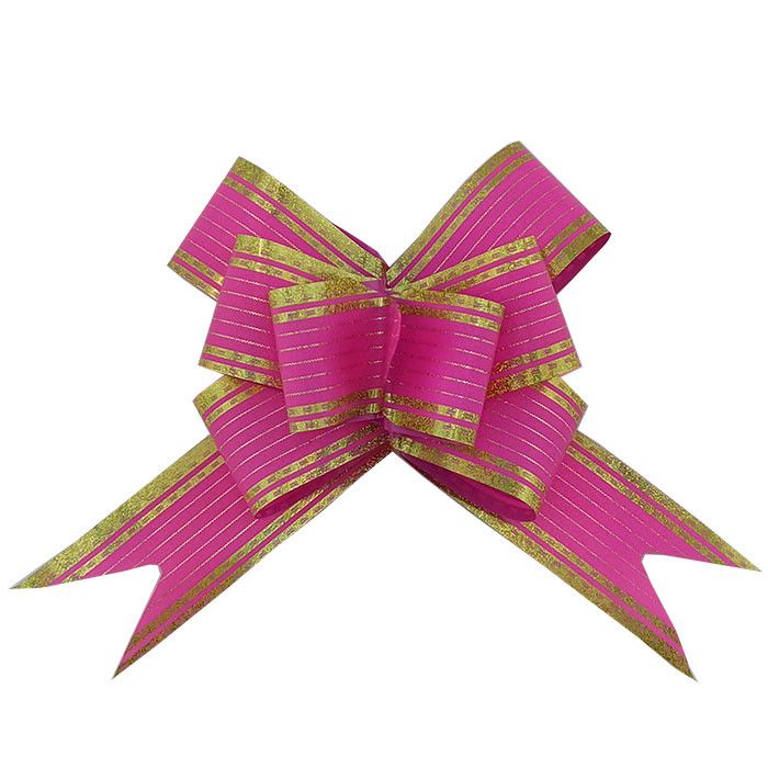 БР 352932 Розовый бант- бабочка с золотом для упаковки.Ширина 3 см. Диаметр 11,5 см.