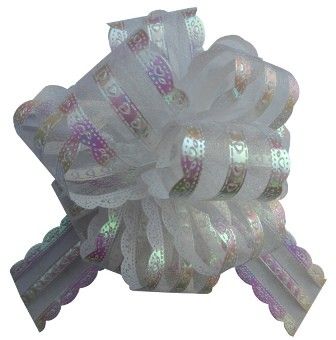 БР 353090 Белый бант- бабочка с перламутром для упаковки.Ширина 5 см. Диаметр 8,5 см.