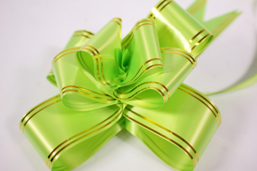 КП 1126 Салатовый бант с золотой полосой. Ширина 1,8 см.