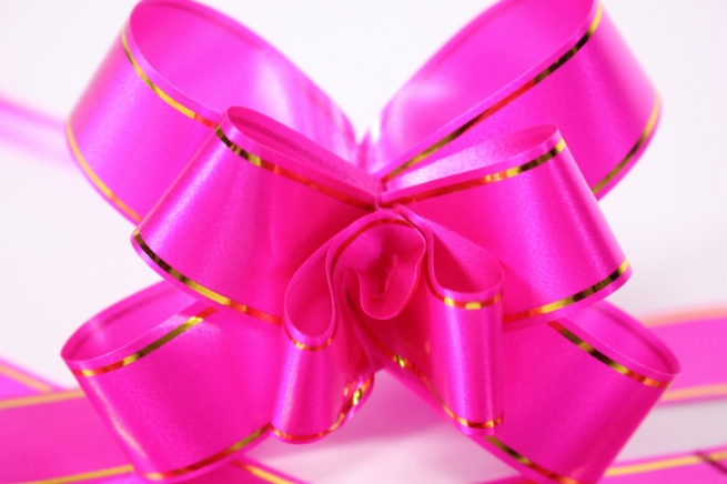 КП 726 Малиновый бант с золотой полосой для упаковки. Ширина 3 см.