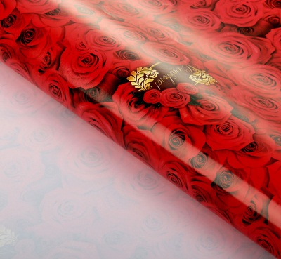 845961 Бумага упаковочная "Алые розы" Размер 70*100 см.Глянцевая
