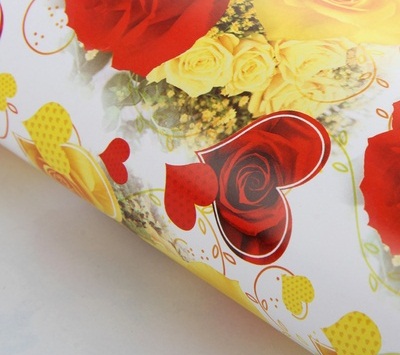 852402 Бумага упаковочная "Розы на белом" Размер 50*70 см.