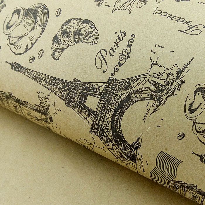 БР 1518 Крафт бумага "Париж" Рисунок черный на коричневом.Ширина 70 см. Плотность 70 г/м2