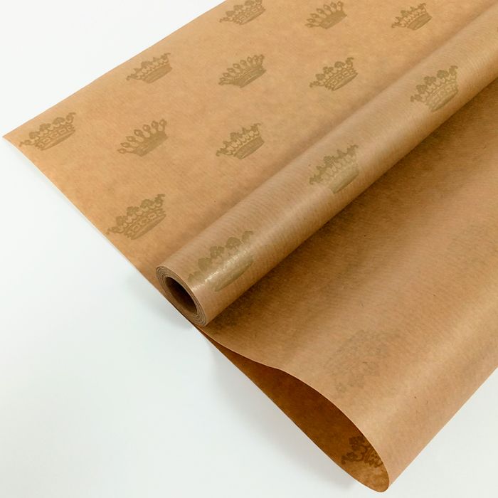 БР 24019 Крафт бумага "Золотая корона на коричневом" Ширина 72 см. Плотность 40 г/м2