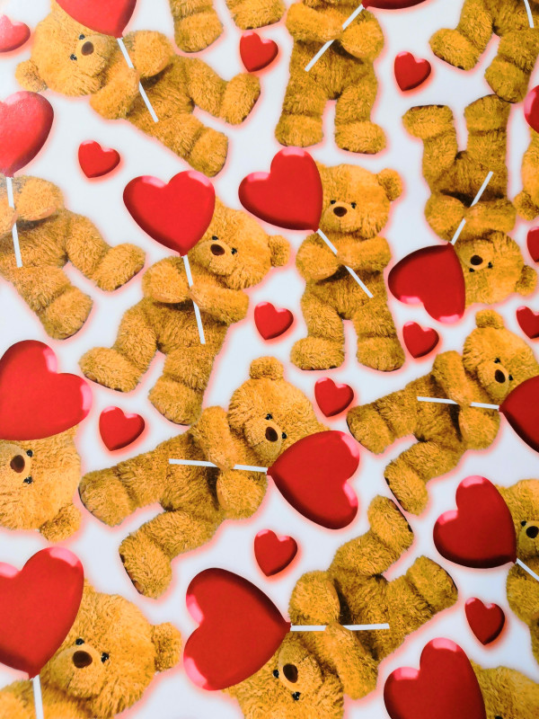 КП 1295 Бумага упаковочная "Коричневый мишка с красным сердечком" Размер 70*100 см.Матовая
