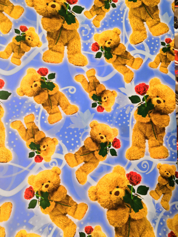 КП 1296 Бумага упаковочная "Коричневый мишка с красной розой" Размер 70*100 см.Матовая